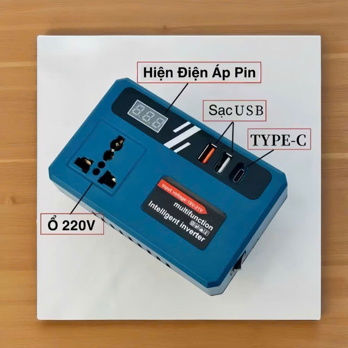 ĐẾ CHUYỂN NGUỒN PIN 21V LÊN 220V CÓ CỔNG USB SẠC ĐIỆN THOẠI - ĐẾ PIN MAKITA 4CM KÍCH ĐIỆN 220V